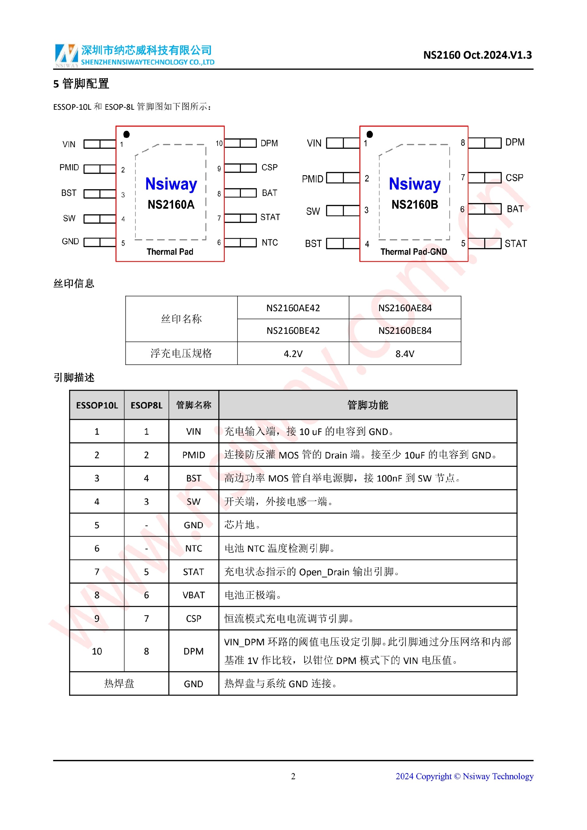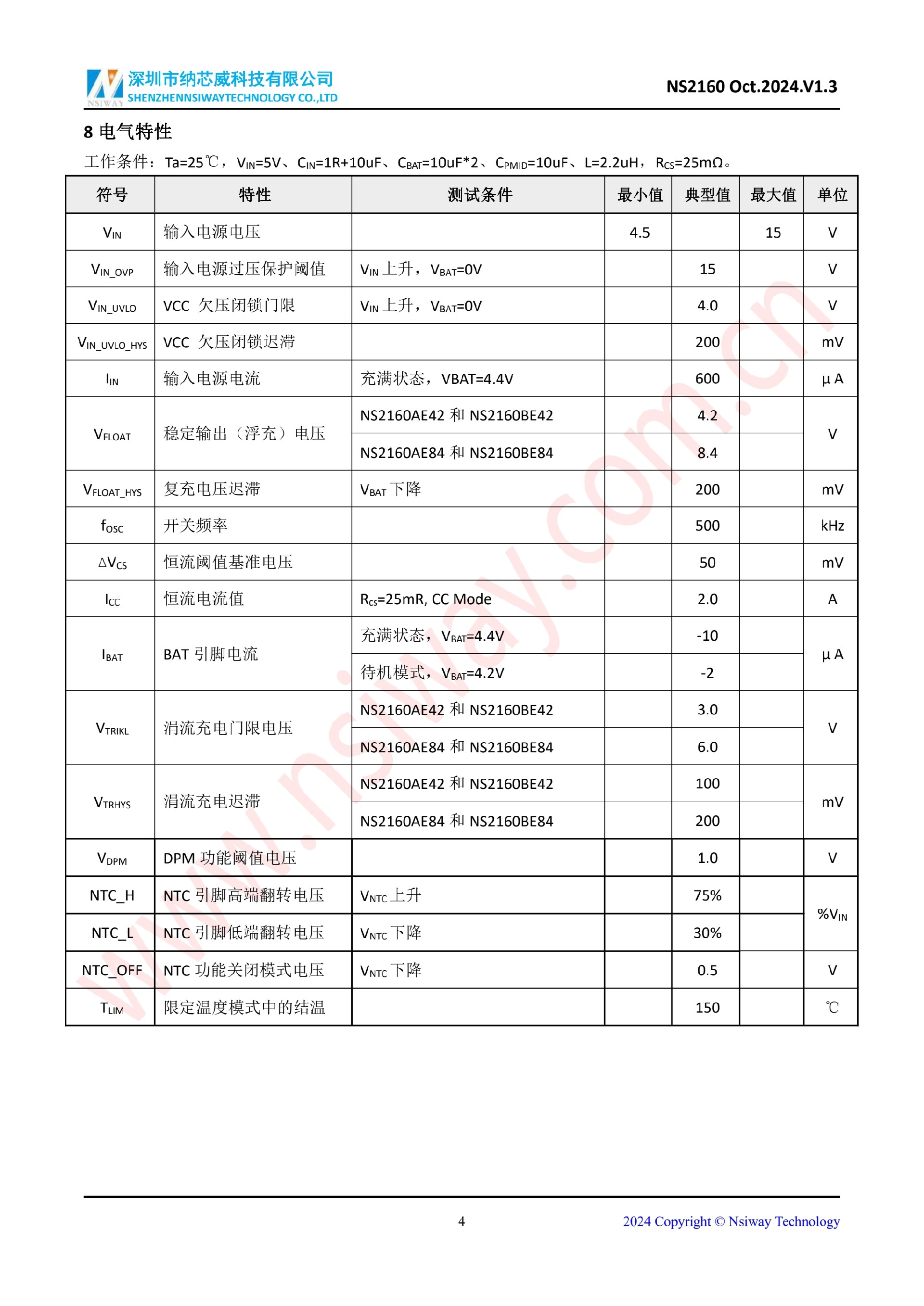 NS2160 同步開關(guān)型降壓鋰電池充電管理 IC