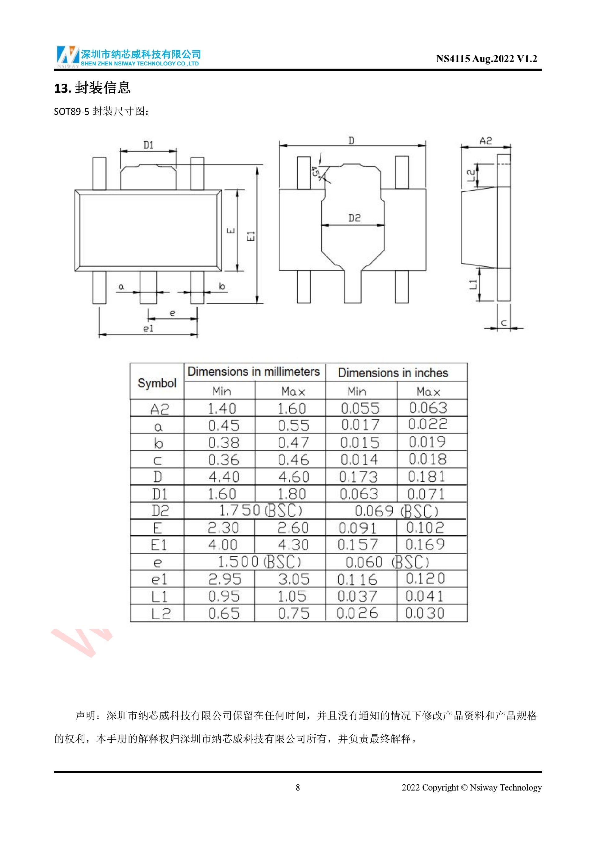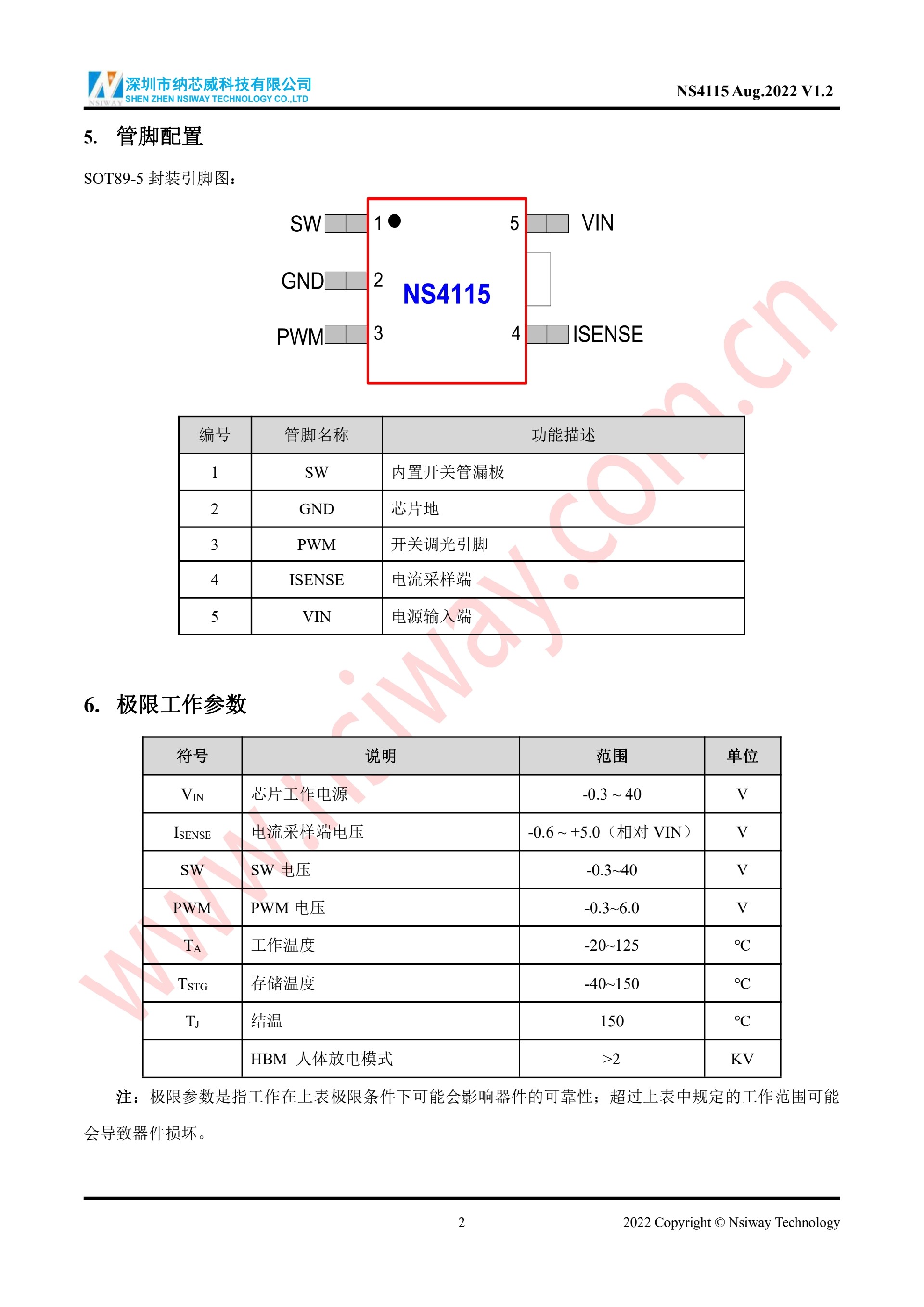 NS4115 1A內置功率管LED恒流驅動器(SOT89-5)