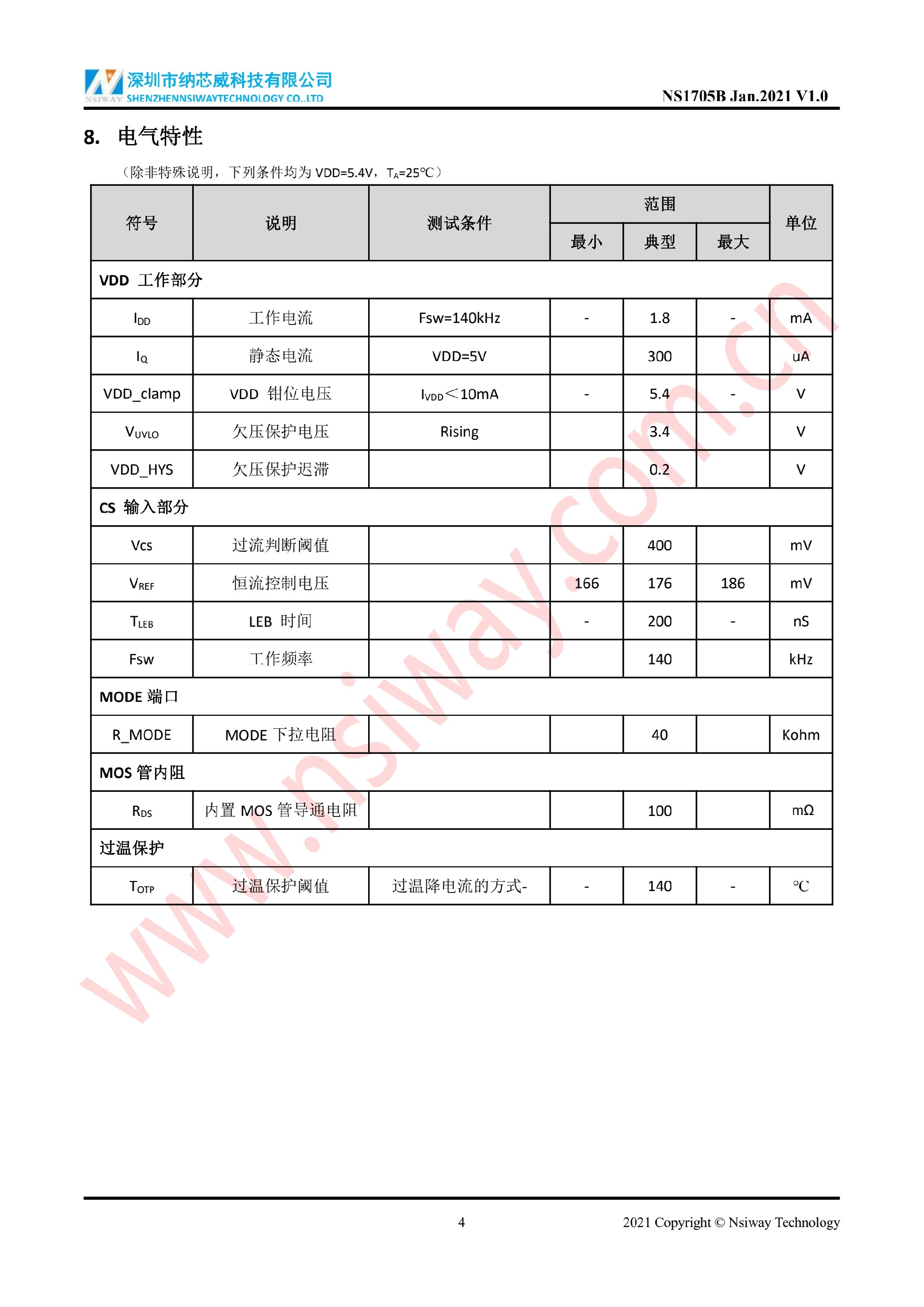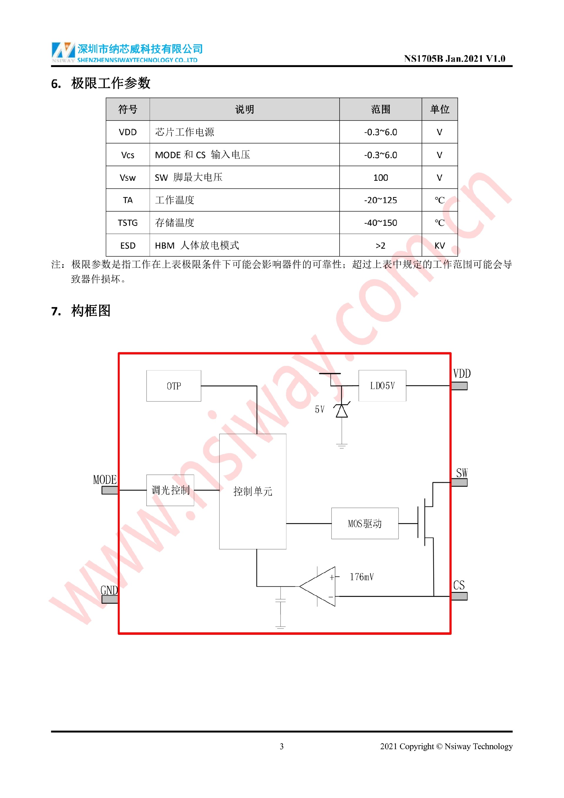 NS1705B 內置 MOS 管開關降壓型 LED 恒流驅動器