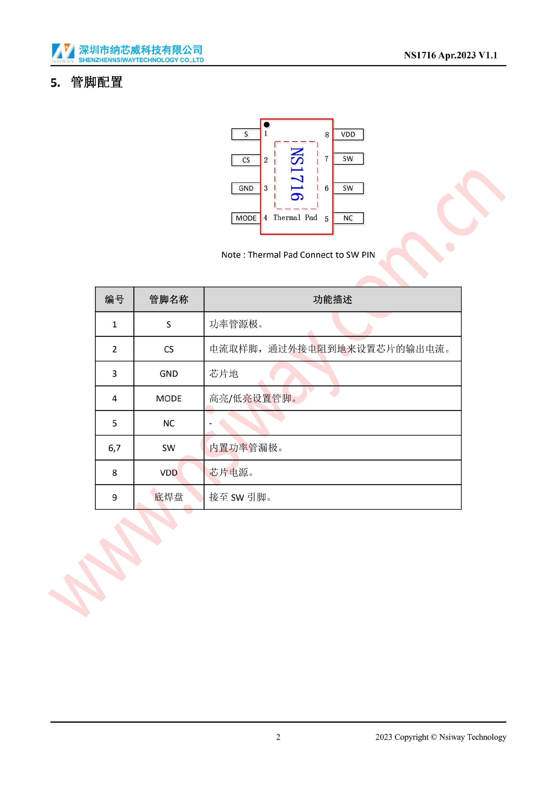 NS1716 內(nèi)置 MOS 管開關(guān)降壓型 LED 恒流驅(qū)動器