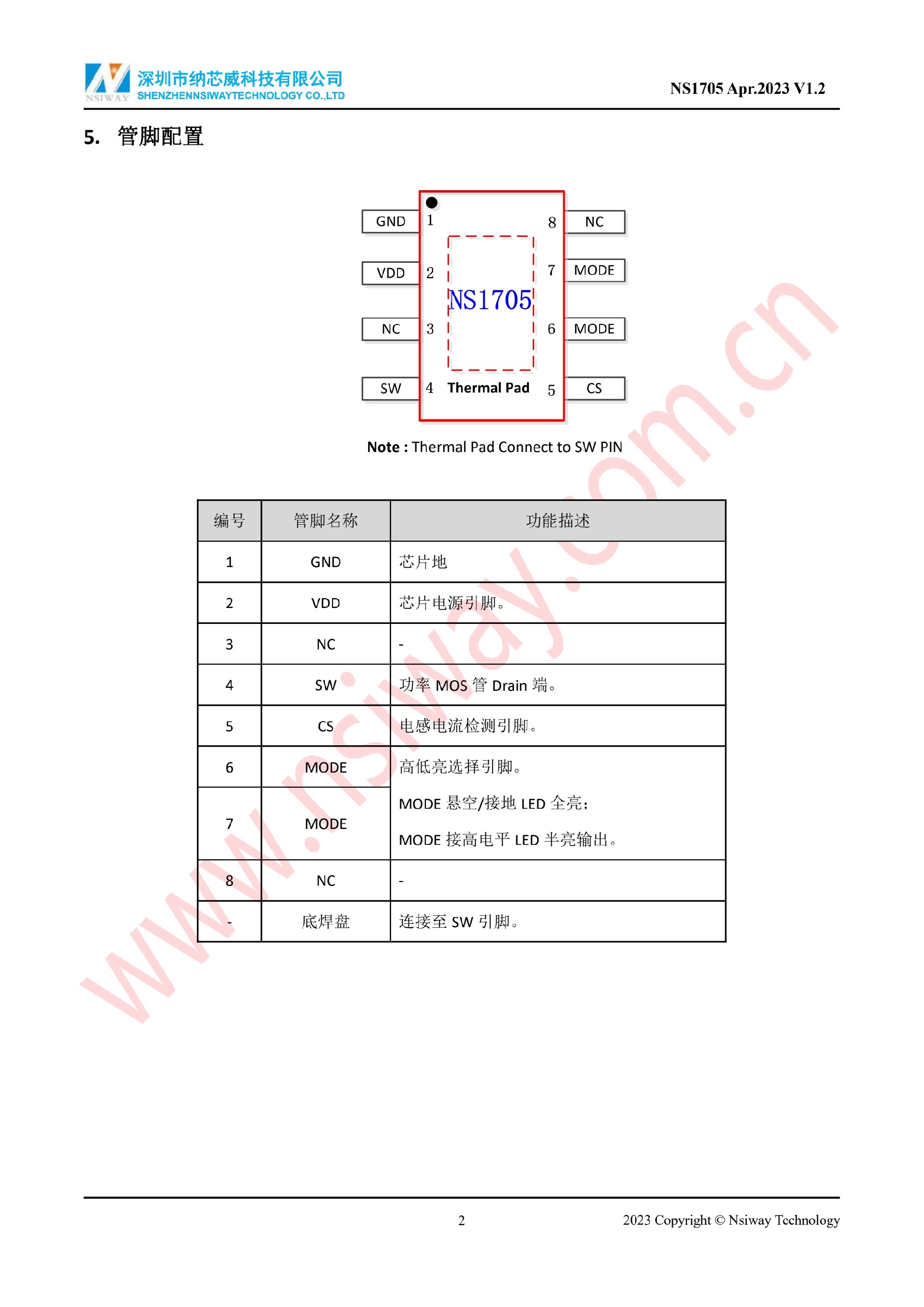 NS1705 內置 MOS 管開關降壓型 LED 恒流驅動器