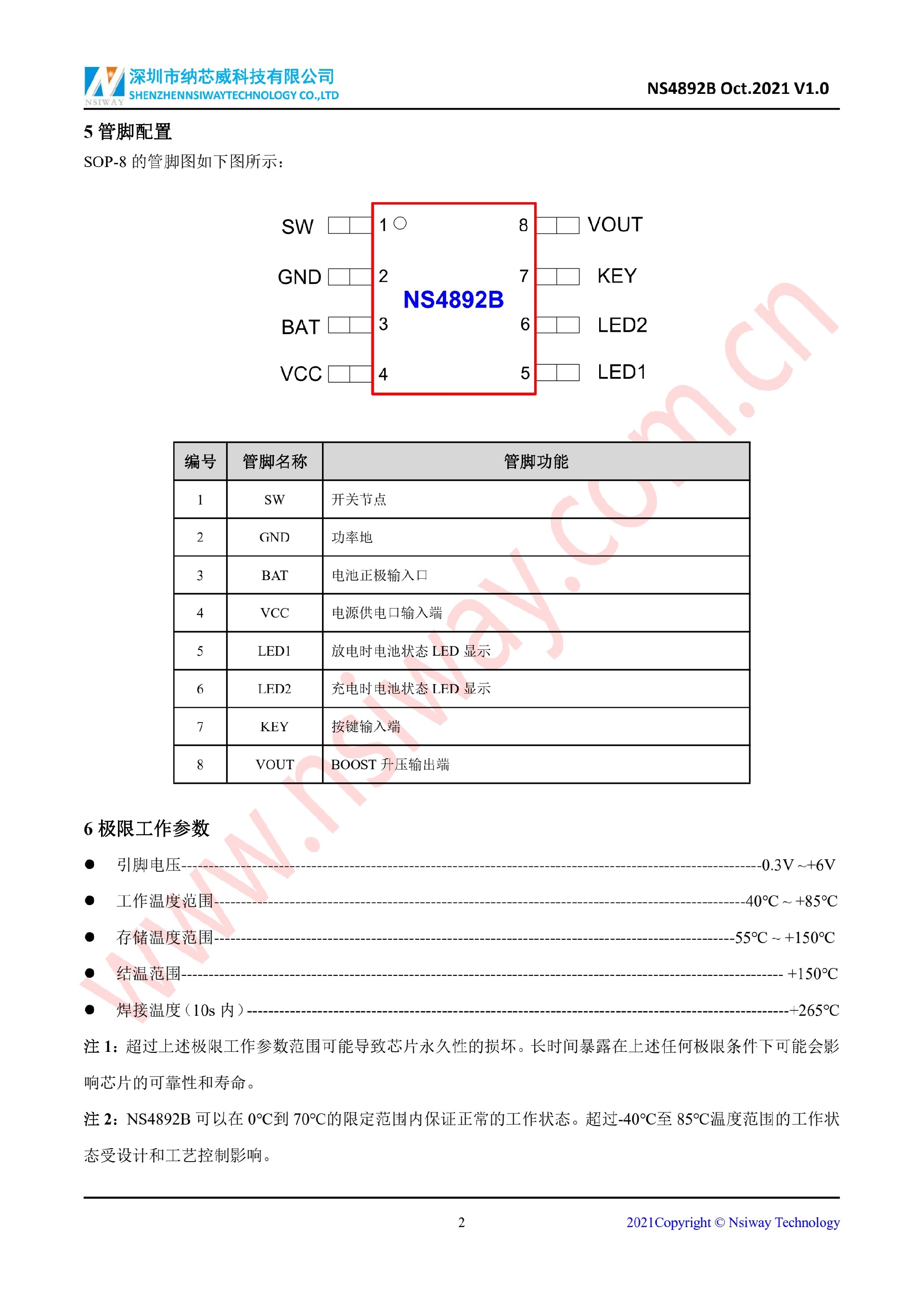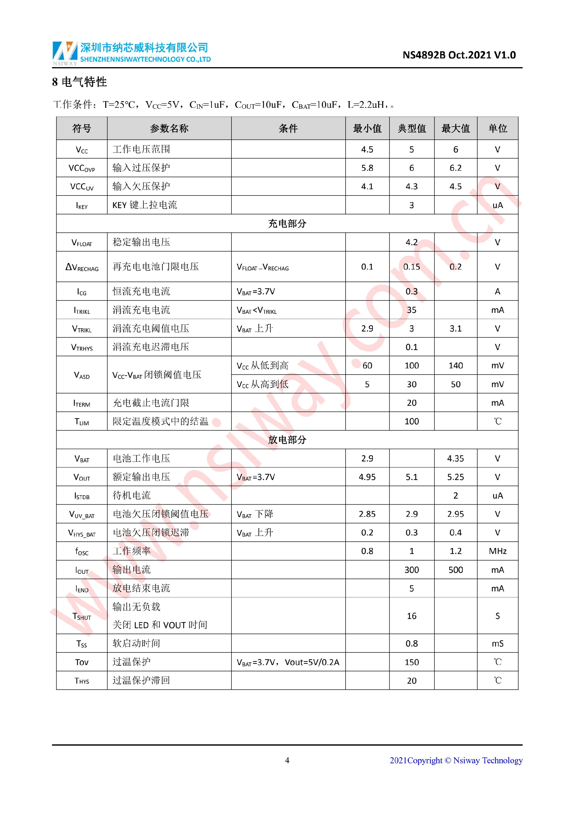 NS4892B 藍牙耳機充電倉-線性鋰電池充放電管理 IC