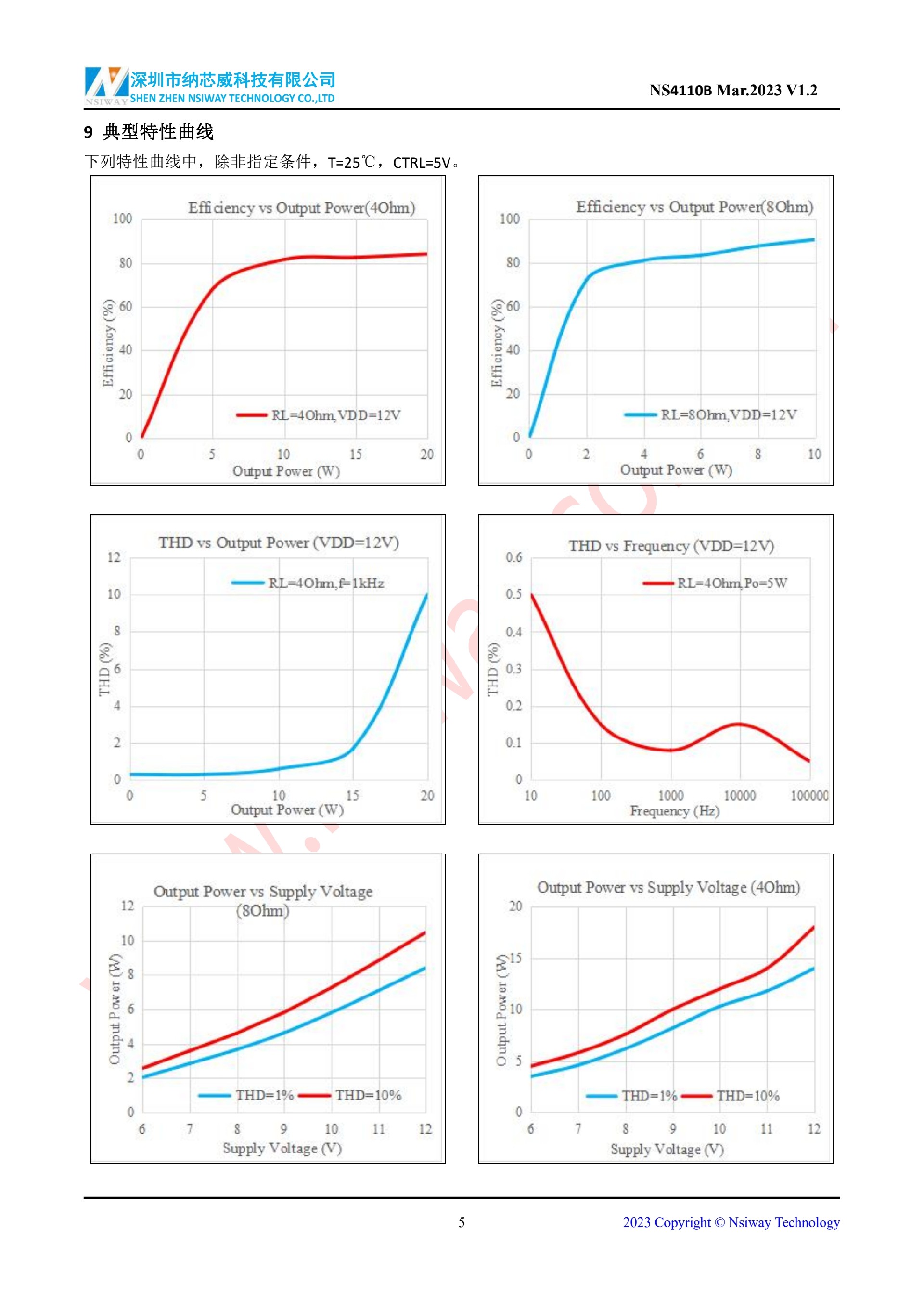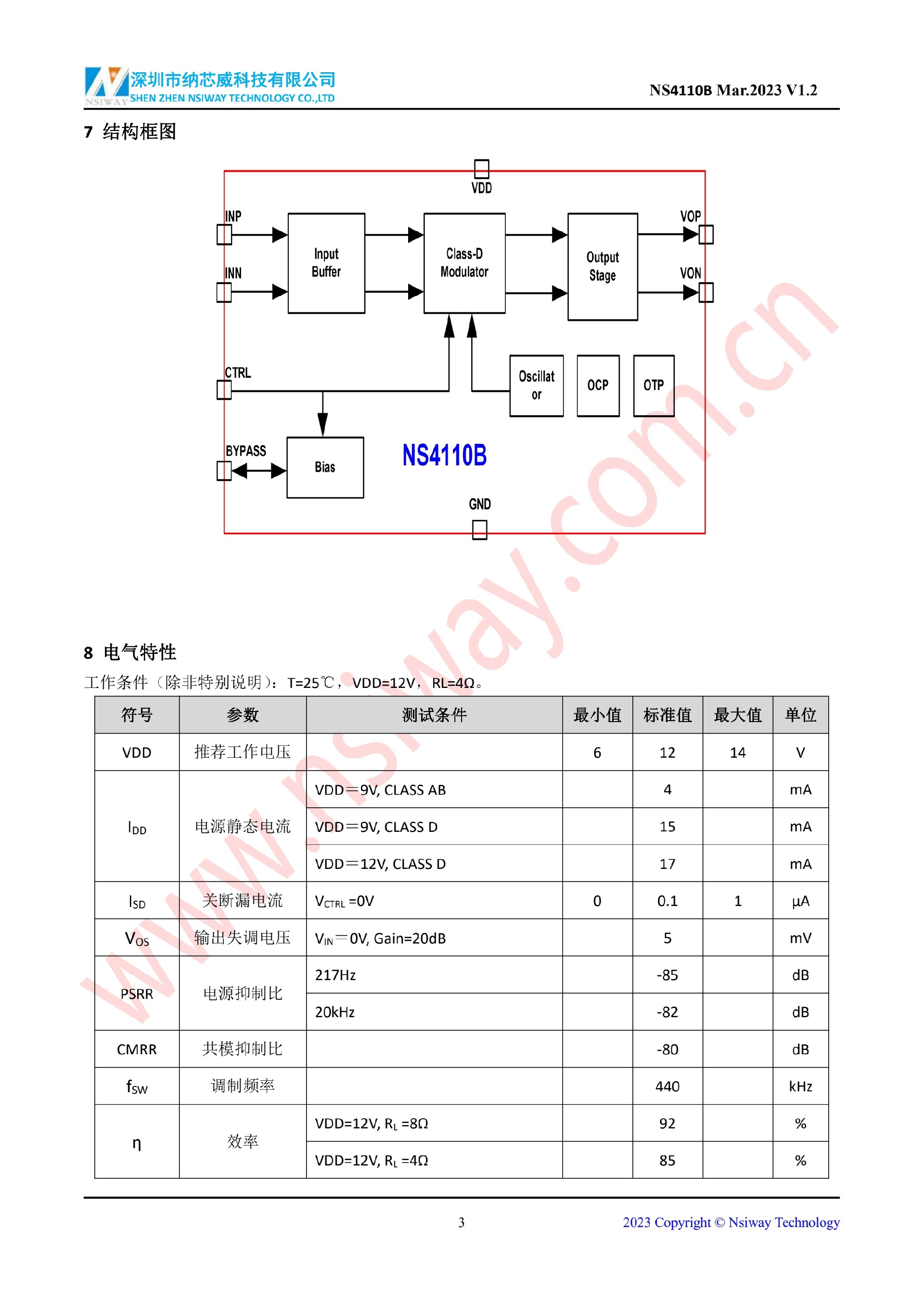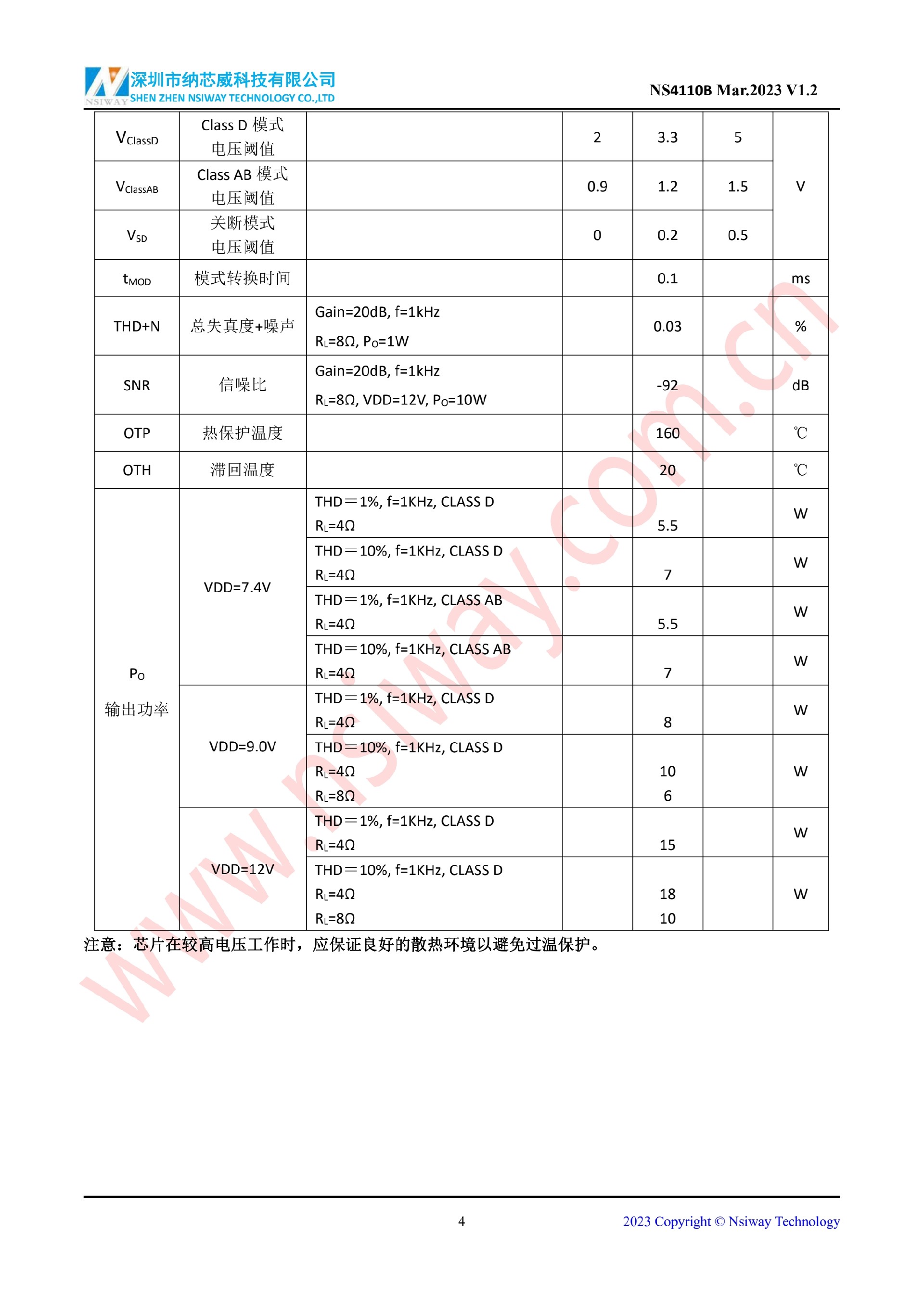 NS4110B 18W 單聲道 AB/D 類雙模音頻功率放大器