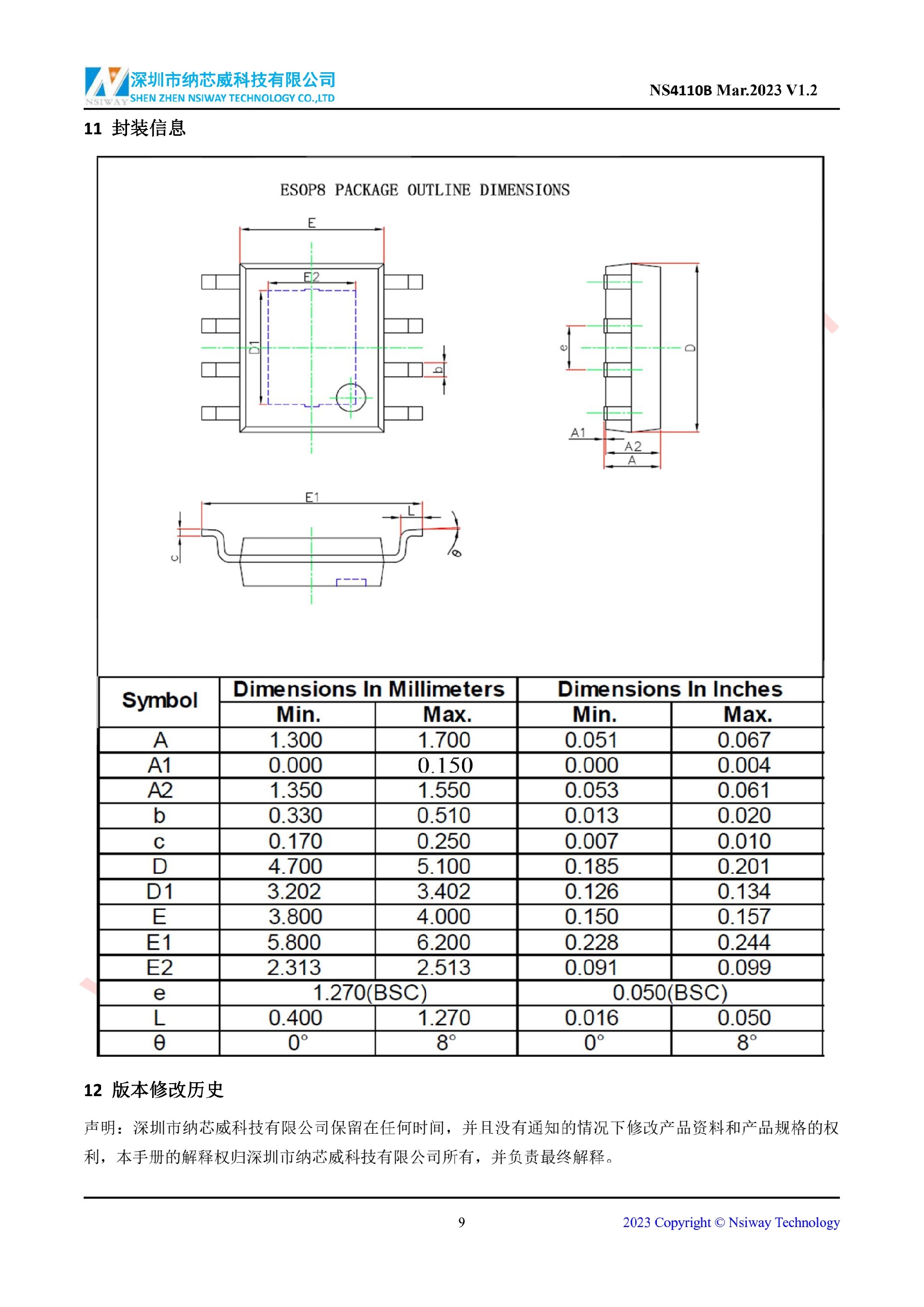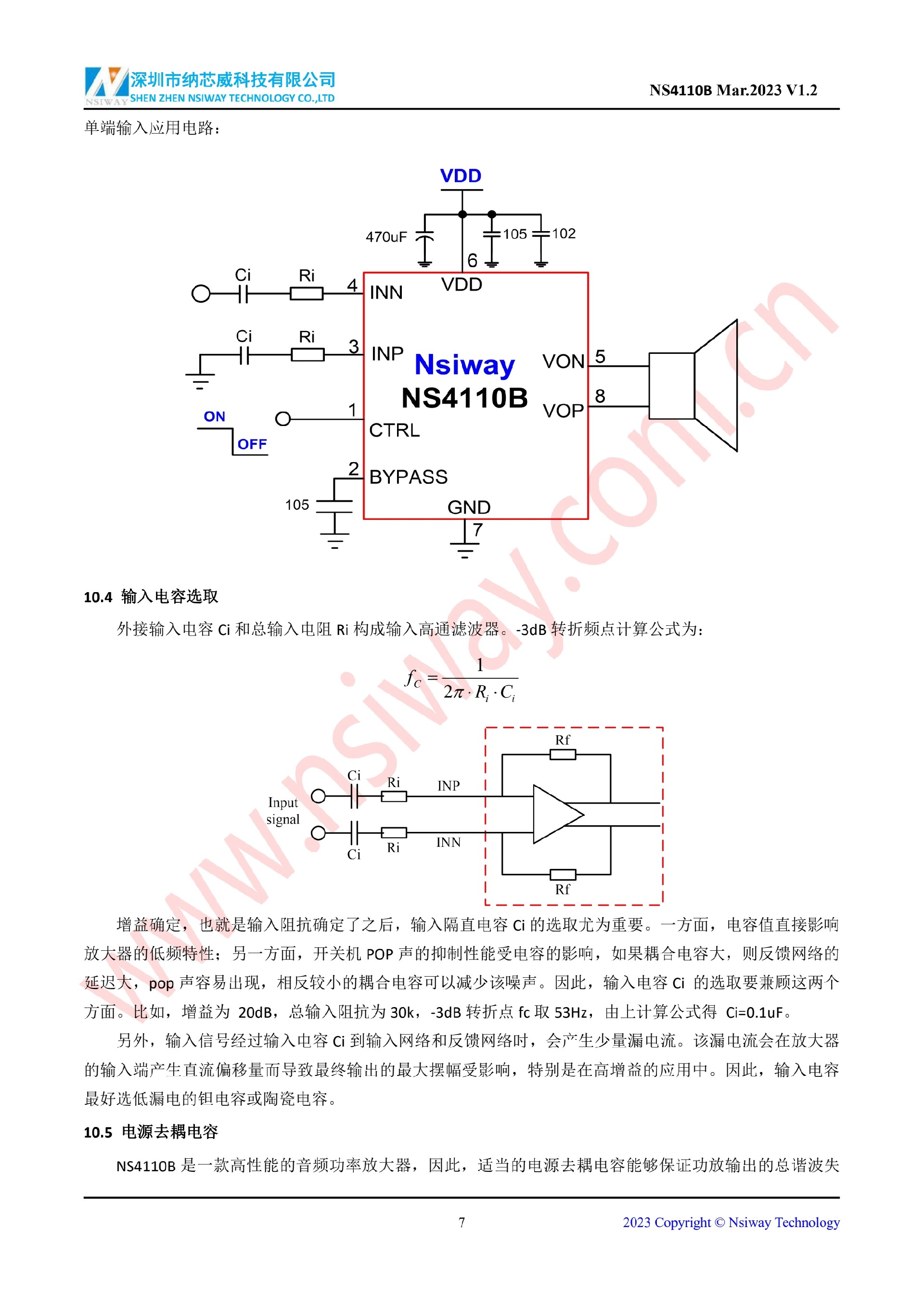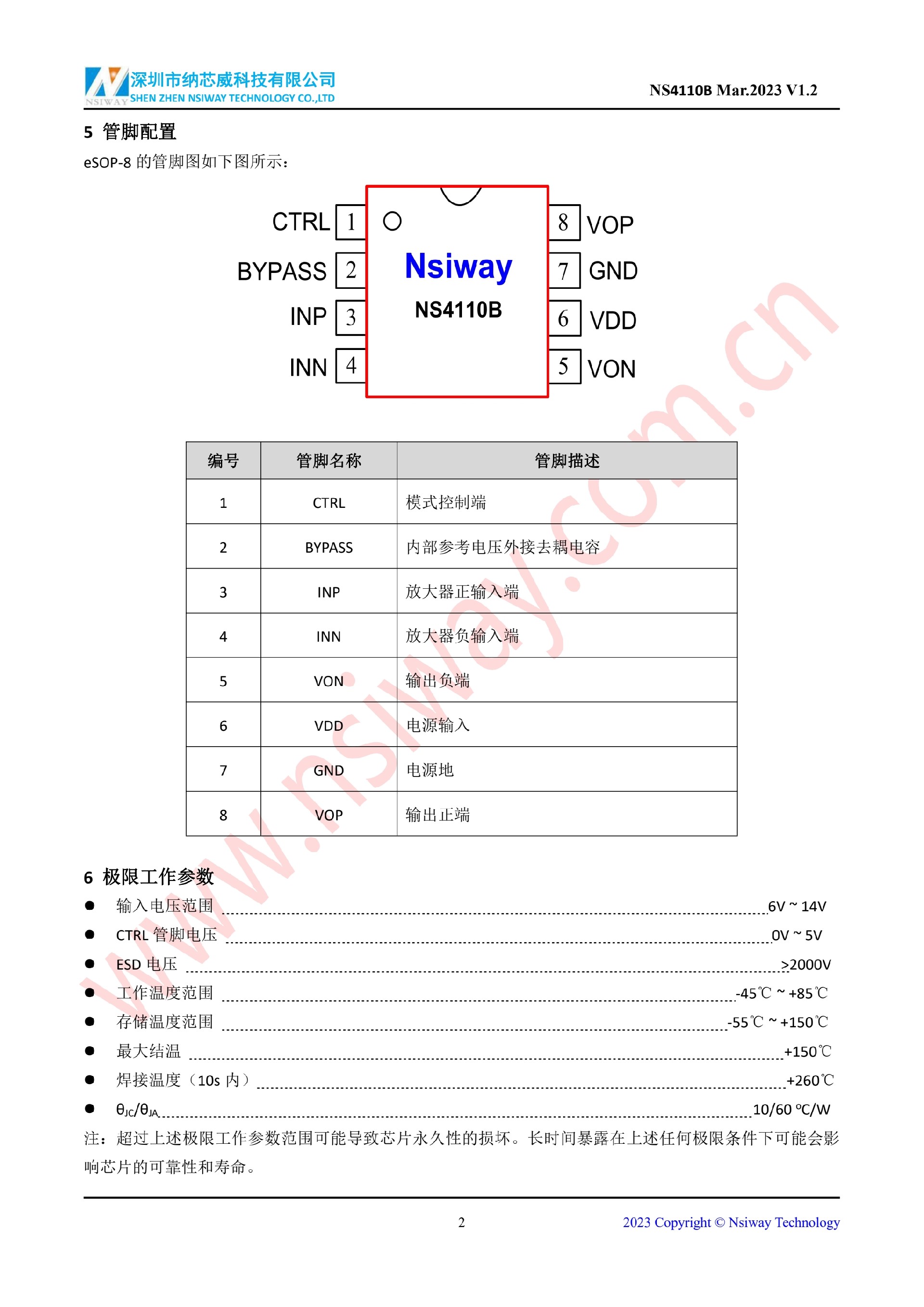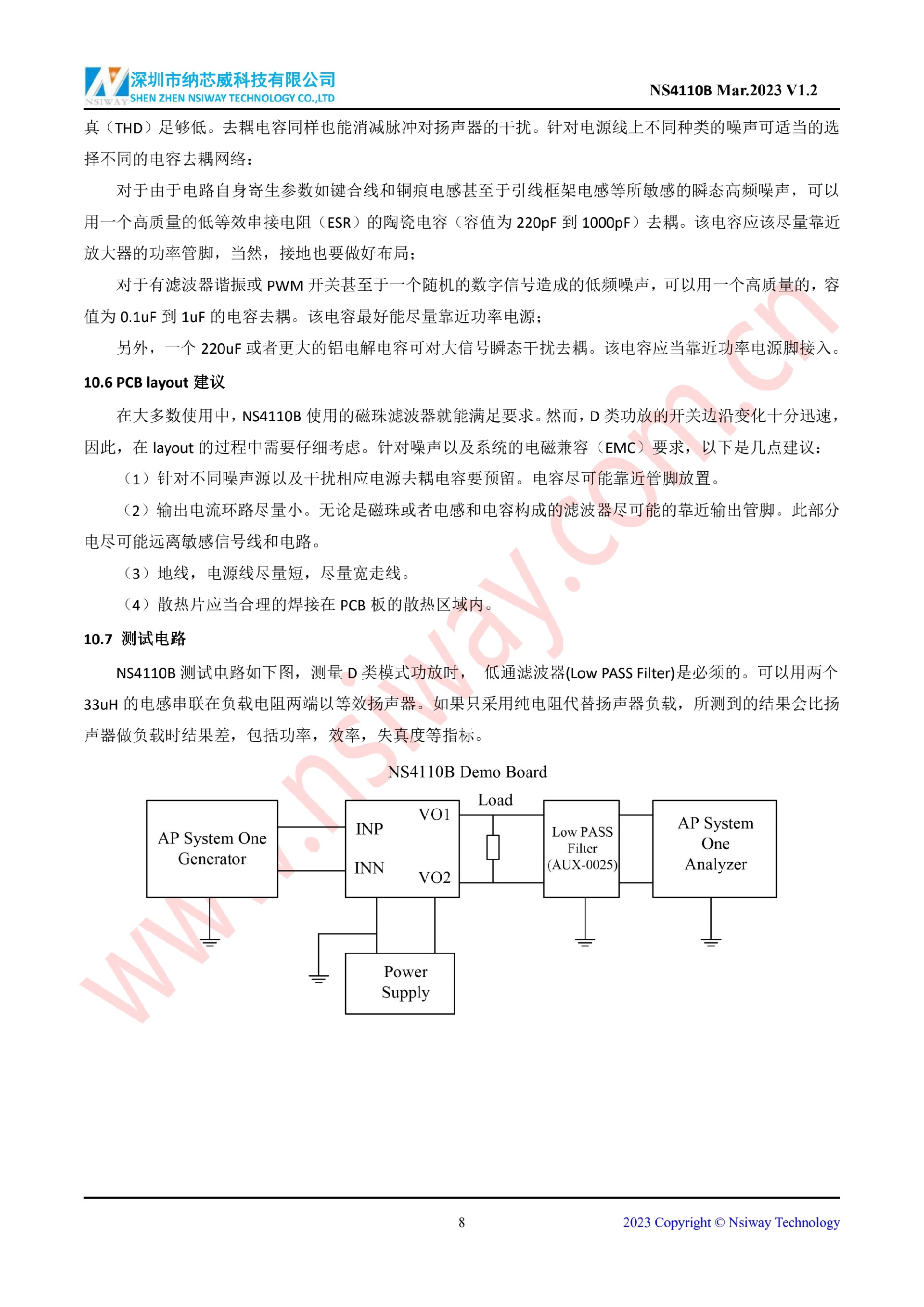 NS4110B 18W 單聲道 AB/D 類雙模音頻功率放大器